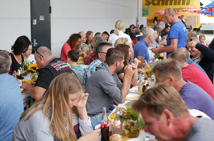 Bunt und gesellig ging es zu beim diesjährigen Hoffest der Schmitt Gruppe im Juli 2019. Die Kollegen der drei DMS-Betriebe und der Bullinger Spedition trafen sich zum Austausch und zur Firmenolympiade.